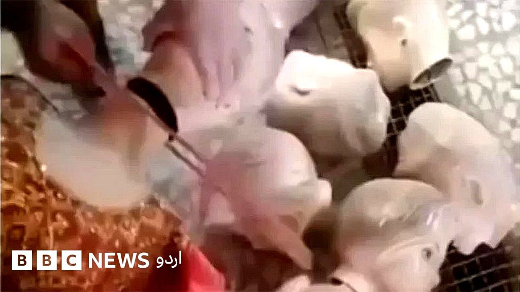 سوشل میڈیا پر ایسی ویڈیوز وائرل ہو رہی ہیں جس میں دکاندار پتلوں کی گردنیں کاٹ کر الگ کر رہے ہیں۔