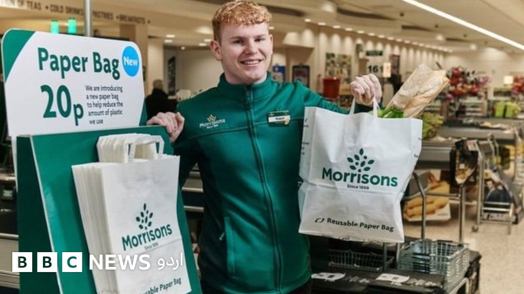 امریکہ کی سپر مارکیٹ چین موری سنز آزمائشی طور پر اپنے دوبارہ قابل استعمال پلاسٹک تھیلوں کی قیمت دس سے بڑھا کر 15 پینس کرنے کے ساتھ کاغذی تھیلوں کو متعارف کروا رہی ہے۔