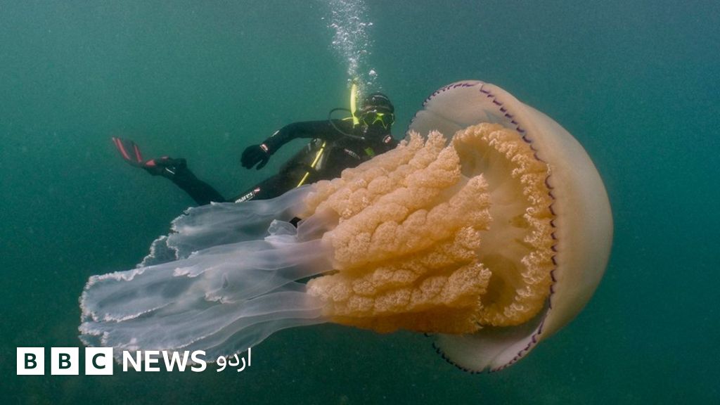 برطانیہ میں کورنوال کے ساحل کے قریب سمندر میں ایک بڑی جیلی فش کو دیکھنے والے غوطہ خوروں کا کہنا ہے کہ اس دیو قامت مخلوق سے ملاقات ایک عجیب تجربہ تھا۔