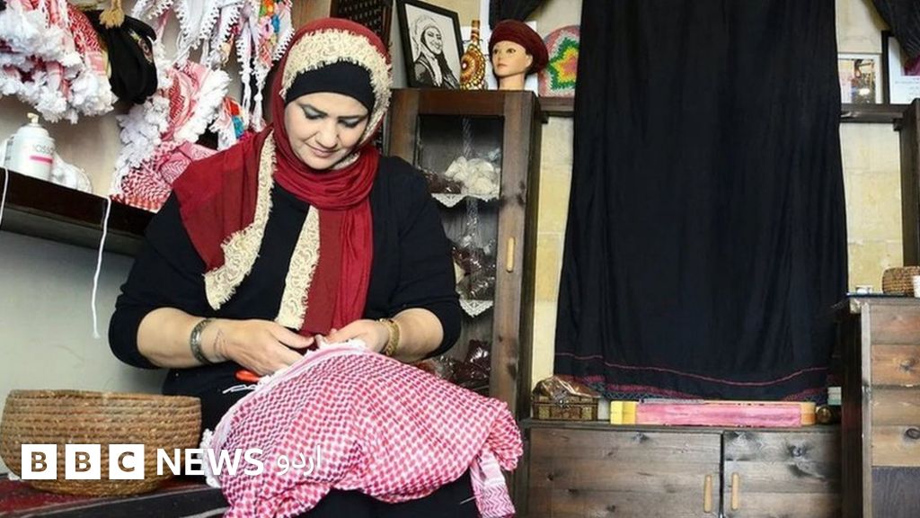 ہم شہر کے وسط میں اُن کی چھوٹی سی دکان پر کڑھائی والے لباسوں اور سکارفس میں گھرے بیٹھے تھے، جہاں میں نے پہلی بار اُنھیں ایک روایتی اردنی سکارف ’شماغ‘ کی جھالر کی سلائی کرتے ہوئے دیکھا۔ اُنھوں نے مجھے اپنے آبائی شہر کے بارے میں مزید بتانے کے لیے اپنا کام روک دیا۔