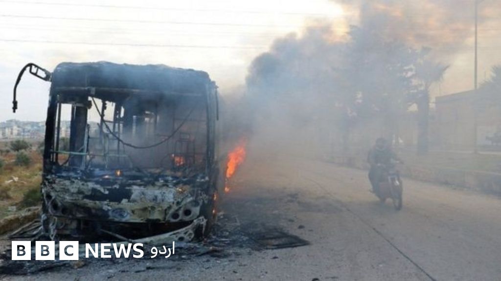 شام کے صوبے ادلب میں حکومت مخالف باغیوں کے زیرانتظام دیہات سے بیمار اور زخمی شہریوں کے انخلا کے لیے جانے والی کئی بسوں باغیوں نے نذر آتش کر دیا ہے۔