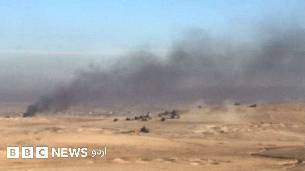 اتوار کے روز سینکڑوں فوجی گاڑیاں، جنھیں جنگی طیاروں کی مدد حاصل ہے، صحرا میں پیش قدمی کرتے ہوئے موصل میں جہادیوں کے ٹھکانوں کی طرف بڑھ رہی ہیں، اور دیہات سے دھواں اٹھتا ہوا دیکھا جا سکتا ہے۔