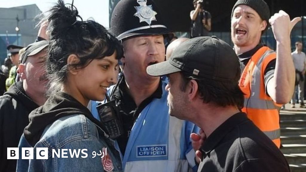 وائرل تصویر والی خاتون صفیہ خان نے بی بی سی کو بتایا ہے کہ یہ تصویر برمنگھم میں اس وقت لی گئی جب وہ مظاہرین کے درمیان گھری ایک لڑکی کا دفاع کرنے کے لیے زطاہرین کے درمیان میں آ گئیں۔