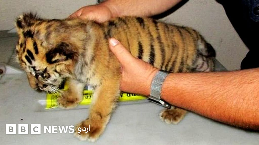 امریکہ میں محکمہ 'وائلڈ لائف سروس' کے حکام نے اس بنگالی نسل کے شیر کے بچے کو اپنی تحویل میں لے لیا ہے۔