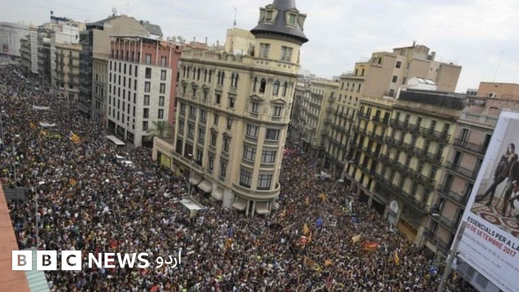 یہ مظاہرین گزشتہ اتوار کو کاتالونیہ کی سپین سے آزادی کے بارے میں ریفرینڈم کے دوران پولیس کی کارروائیوں کے خلاف احتجاج کر رہے ہیں۔