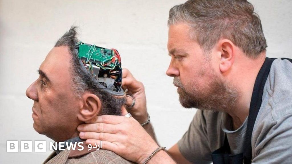 انجینئرڈ آرٹس کے بنائے گئے اس روبوٹ کی کھوپڑی میں برقی تاروں کی مرمت کرتے ہو اس مصنوعی اعضا کے ماہر مائیک ہمفرے کی یہ تصویر نہ صرف سحر انگیز ہے بلکہ پریشان کُن بھی لگتی ہے۔ انجینئرڈ آرٹس کا یہ وعدہ ہے کہ وہ غیر ذی روح مواد سے ’حقیقی زندگی کے لوگوں کو اُن کے ایک ایک بال کی کھال تک تمام باریکیوں کے ساتھ بنائے گا‘ دراصل قبرصی مجسمہ ساز، پِگ میلین کی یاد دلاتا ہے، جس نے پتھروں سے ایسے حسین مجسمے تراشے تھے کہ وہ پتھر میں ایک زندہ انسان نظر آتے ہیں۔