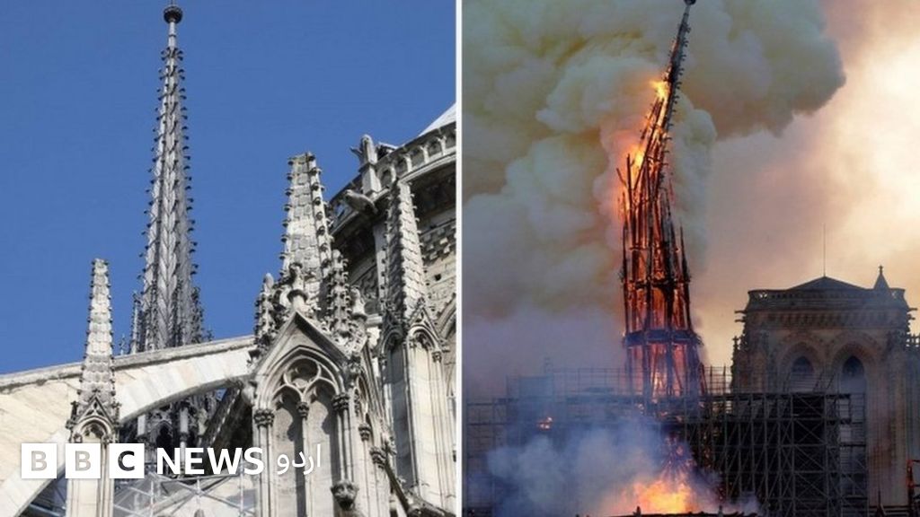نوٹراڈام کیتھیڈرل کا مشہور برج جو پیر کے روز لگنے والی آگ میں تباہ ہو گیا بارہویں صدی میں بنایا گیا۔