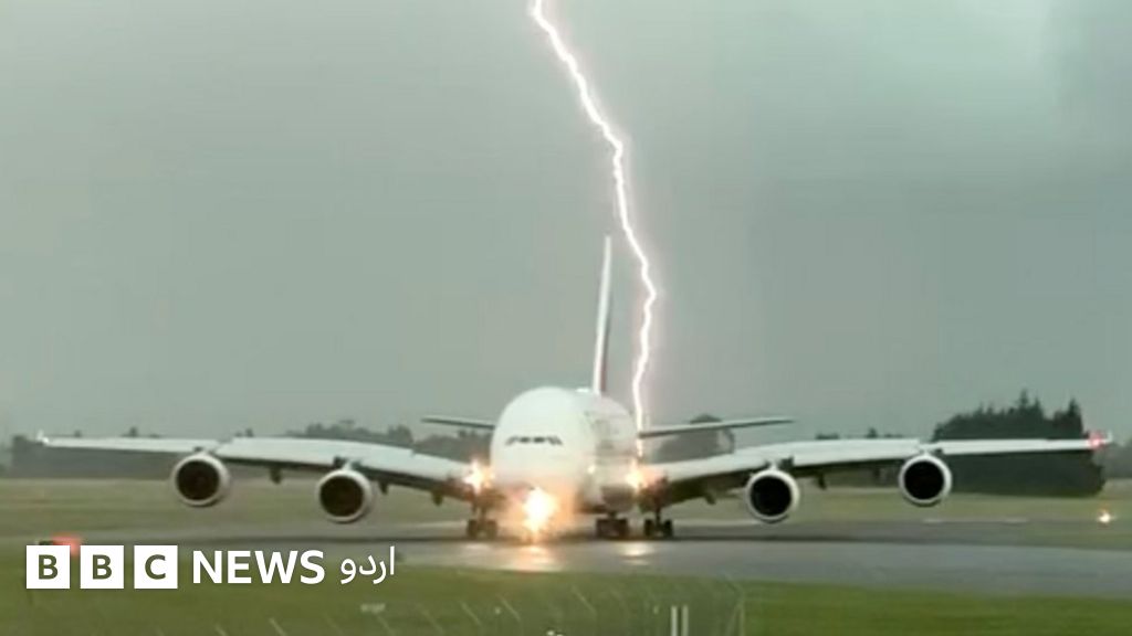 نیوزی لینڈ کے شہر کرائسٹ چرچ میں ایک شخص نے اس لمحے کو کیمرے کی آنکھ میں محفوظ کر لیا جب آسمانی بجلی مقامی ایئر پورٹ پر ایک مسافر طیارے کے بالکل قریب گری۔