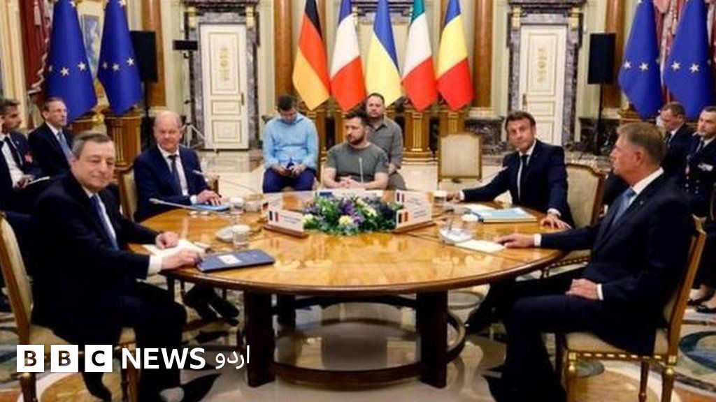 روس کے حملے کے بعد دارالحکومت کے اس طرح کے پہلے دورے میں، فرانس کے ایمانوئیل میکروں، جرمنی کے اولاف شولز، اٹلی کے ماریو ڈراگی اور رومانیہ کے کلاؤس یوہانس نے صدر زیلنسکی سے مصافحہ کیا، جنہوں نے جنگ شروع ہونے کے بعد سے یوکرین نہیں چھوڑا۔