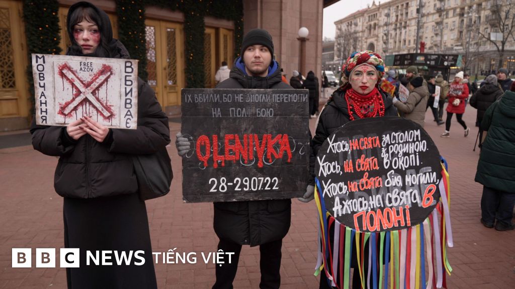 Nhưng nhiều người Ukraine vẫn đang tuyệt vọng chờ đợi tin tức về người thân của họ. Ở trung tâm Kyiv, người thân và các nhà hoạt động tụ họp để chuẩn bị cho một cuộc biểu tình Giáng sinh đặc biệt nhằm kêu gọi thả tù nhân Ukraine.