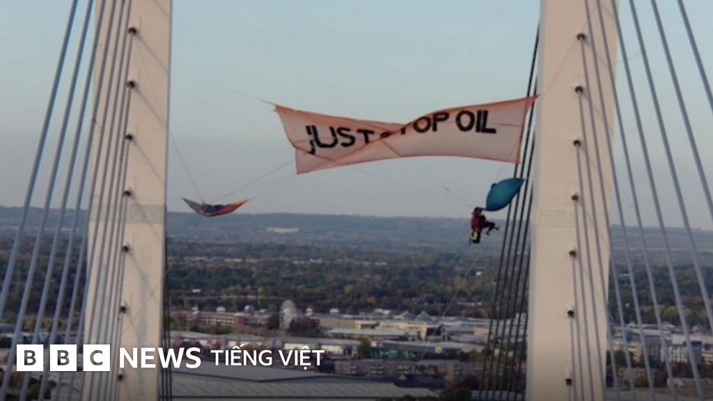 Hai nhà hoạt động chống dầu, ‘Just Stop Oil’ đã bị toà án Anh xử tù vì treo mình lên cầu để đấu tranh trong vụ án kéo dài nhiều tháng qua.