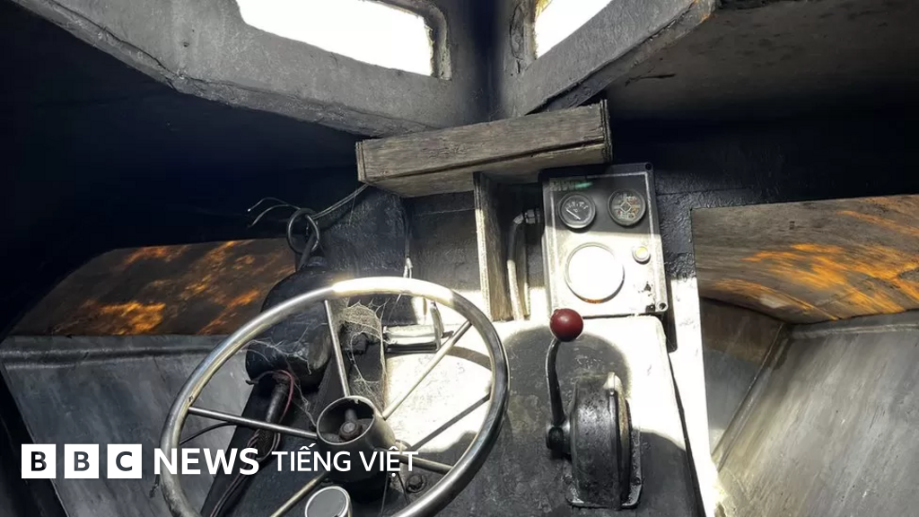 Ánh nắng len lỏi vào bên trong từ những vết nứt mờ trên thân tàu. Có một vô lăng, một vài nút xoay cơ bản và một chiếc chìa khóa rỉ sét vẫn còn cắm trong ổ.