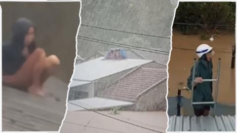 Chụp lại hình ảnh, Người dân cố thủ trên tầng thượng khi nhà bị ngập tại thôn Cẩm Thạch, Phú Hòa, Phú Yên (cũ)