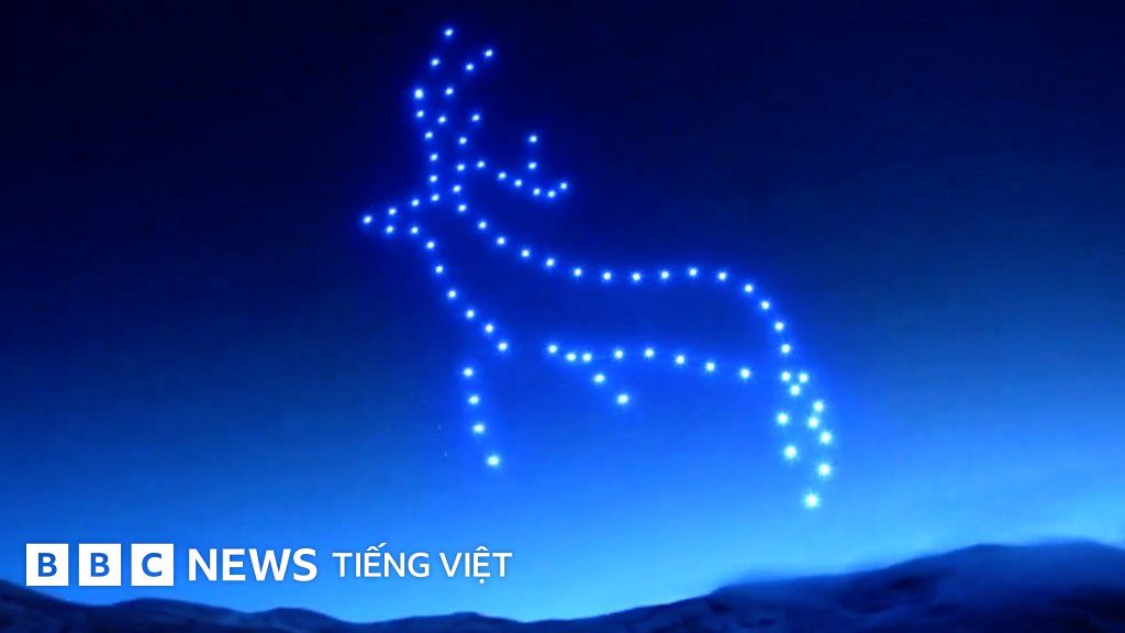 Một dàn khổng lồ các thiết bị bay tự động (drone) thắp sáng nền trời đêm Cao nguyên Scotland trong màn trình diễn đêm Giao thừa Hogmanay để chào đón năm mới 2021.