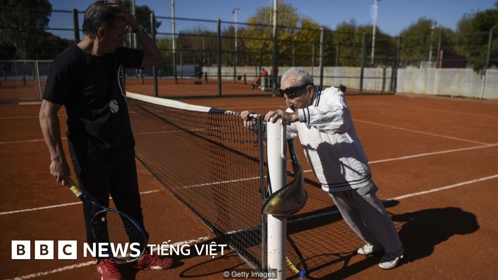 Không thể dừng lại, sẽ không dừng lại. Artyn Elmayan, người Argentina sinh ra ở Armenia, 100 tuổi, đang khởi động trước một buổi tập tennis.