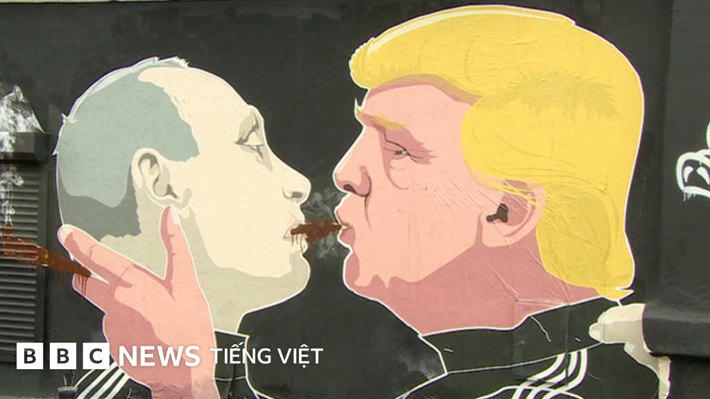 Tại thủ đô Vilnius, đang có một bức tranh tường vẽ ông Trump và Tổng thống Nga Vladimir Putin ôm nhau thắm thiết.
