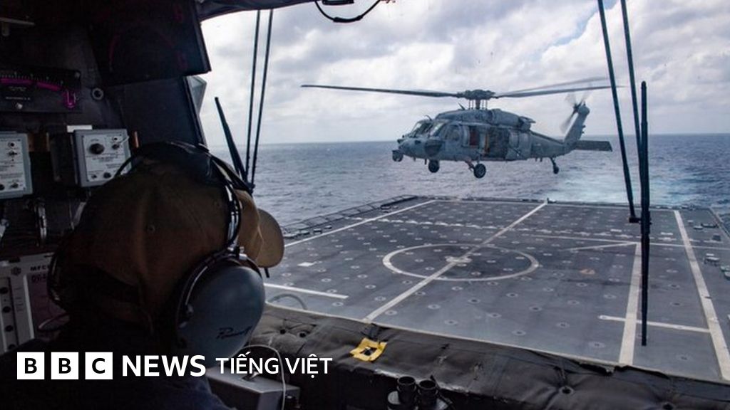 Một chiếc trực thăng MH-60S cất cánh từ chiến hạm USS Monthomery khi đang tuần tra trên Biển Đông