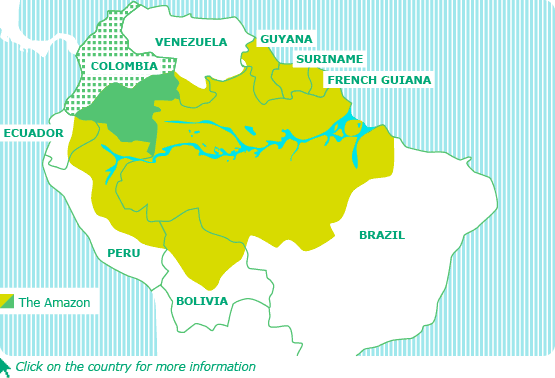 The fourth largest country in South America and one of the continent's most populous nations, Colombia has substantial oil reserves and is a major producer of gold, silver, emeralds, platinum and coal. Colombia is also a leading producer of coca, the plant that provides the main ingredient of cocaine. In the highlands, an ongoing battle over coca cultivation has had a significant impact on forest cover. Dumping of chemicals used to process coca impacts heavily on the environment, whilst drug eradication efforts - particularly aerial fumigation - kill surrounding vegetation. Deforestation in Colombia is a result of more than just the cocaine trade. Logging, mining, energy development, infrastructure construction, and agriculture are other significant factors. (Sources: Conservation International, FAO, mongabay.com, Oxford University Environmental Change Institute, UN, WWF) | ||||||||||||||||||||||||||||||||||||||||||||||||||||||||||||||||||||