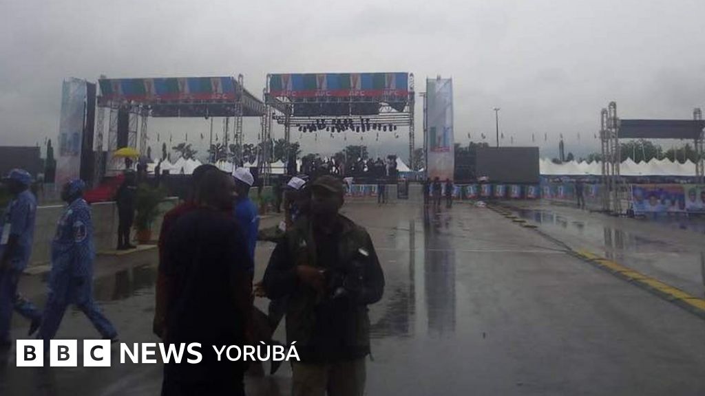 Pẹ̀lú òjò wẹliwẹlí tó gbòdee ní ìlú Abuja, àwọn ènìyàn ti ń lọ síbi ìpàdé ìpádé àpapọ̀ ẹgbẹ́ ọ́ṣèlú APC tó ń wáyé ní Eagle Square.
