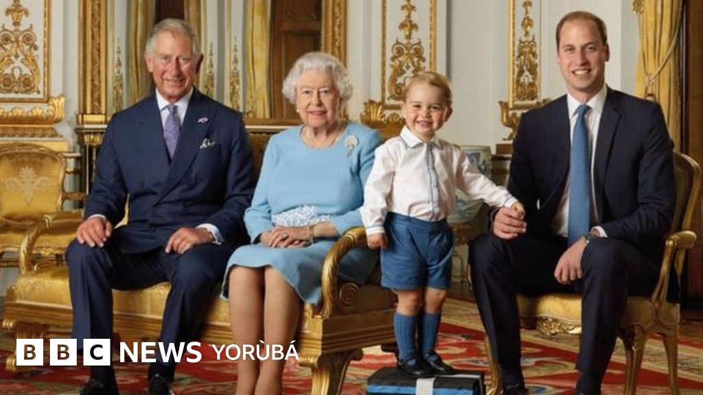 Aworan naa ṣafihan Omo ọba Wales, Duke ti Cambridge ati Omo oba George ti wọn duro pẹlu Obabinrin Elizabeth ni aafin Buchingham.