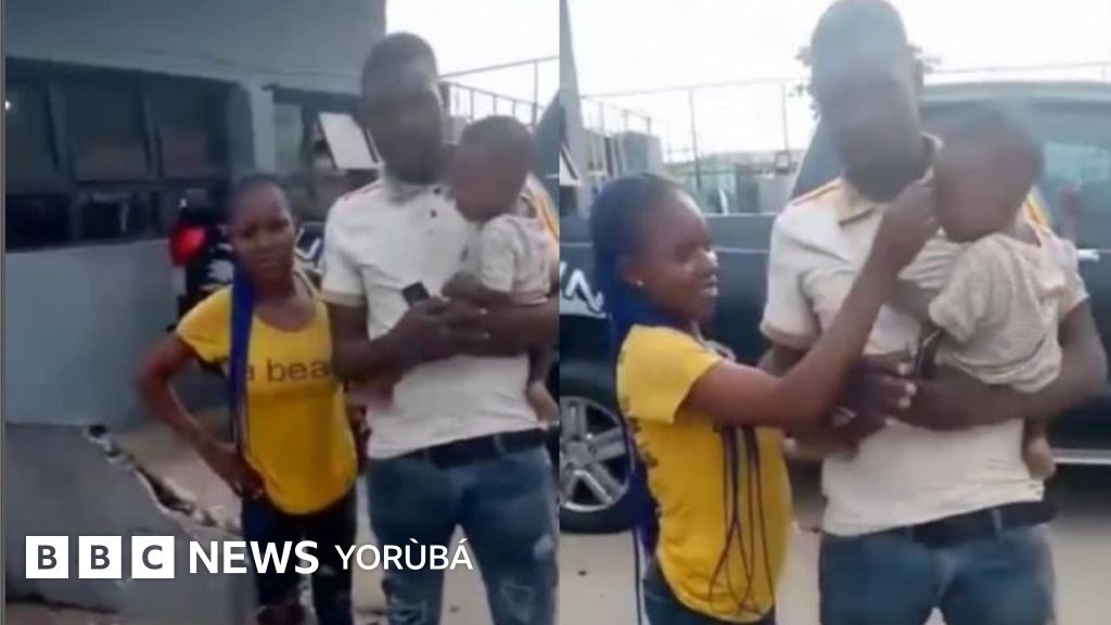 Ninu fidio kan to tun ti wa lori ayelujara bayii, obinrin naa duro pẹlu ọkunrin kan to gbe ọmọde kan dani.