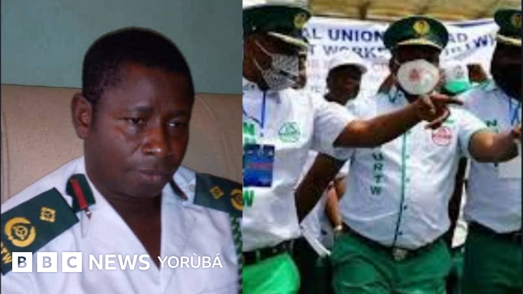 Abideen Olajide wọ aṣọ ẹgbẹ́ NURTW, àwọn òṣìṣẹ́ NURTW míì wà ní ẹ̀gbẹ́ ọ̀tún